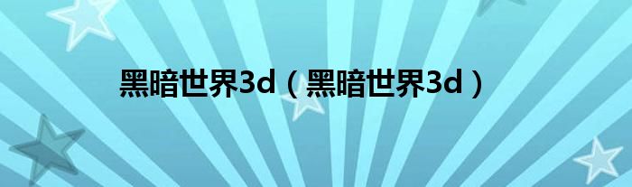 黑暗世界3d(黑暗世界3d)