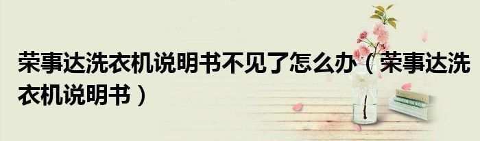 榮事達洗衣機說明書不見了怎么辦(榮事達洗衣機說明書)