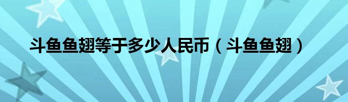 斗魚魚翅等于多少人民幣(斗魚魚翅)