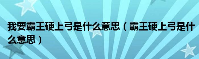 我要霸王硬上弓是什么意思(霸王硬上弓是什么意思)