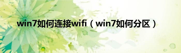 大家好,小飛來為大家解答以上問題,win7如何連接wifi,win7如何分區(qū)很多人還不知道,現(xiàn)在讓我們一起來看看吧!