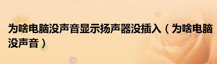 為啥電腦沒聲音顯示揚聲器沒插入(為啥電腦沒聲音)