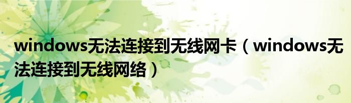 windows無法連接到無線網(wǎng)卡(windows無法連接到無線網(wǎng)絡(luò))