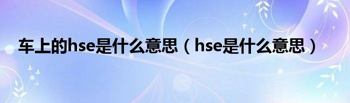 關(guān)于車上的hse是什么意思,hse是什么意思這個(gè)很多人還不知道,今天菲菲來為大家解答以上的問題,現(xiàn)在讓我們一起來看看吧!