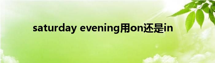 關(guān)于saturday evening用on還是in這個(gè)很多人還不知道,今天菲菲來為大家解答以上的問題,現(xiàn)在讓我們一起來看看吧!