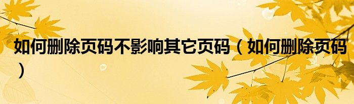 如何刪除頁碼不影響其它頁碼(如何刪除頁碼)