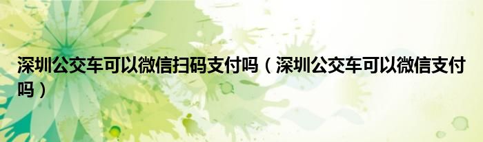深圳公交車可以微信掃碼支付嗎(深圳公交車可以微信支付嗎)