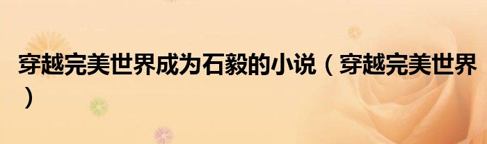 穿越完美世界成為石毅的小說(穿越完美世界)
