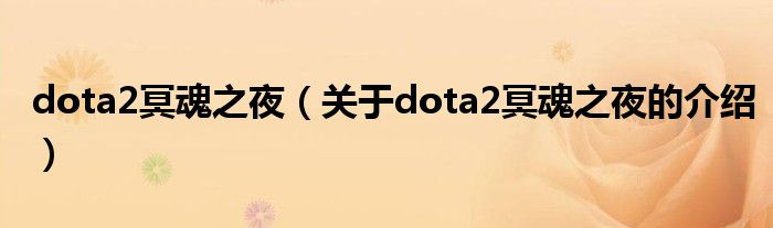 dota2冥魂之夜(關(guān)于dota2冥魂之夜的介紹)