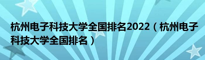 杭州電子科技大學(xué)全國(guó)排名2022(杭州電子科技大學(xué)全國(guó)排名)
