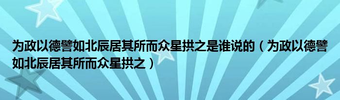 為政以德譬如北辰居其所而眾星拱之是誰說的(為政以德譬如北辰居其所而眾星拱之)