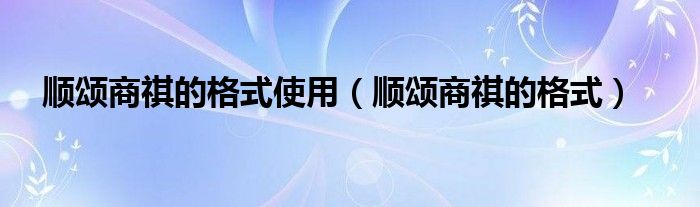 順頌商祺的格式使用(順頌商祺的格式)