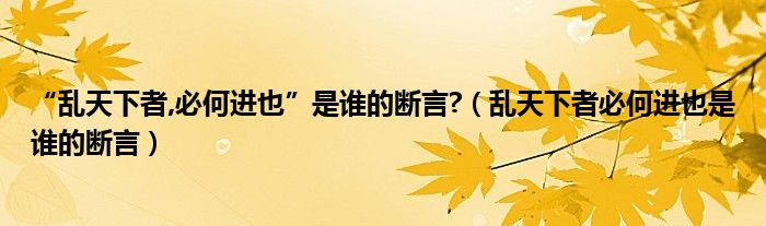 “亂天下者,必何進(jìn)也”是誰的斷言?(亂天下者必何進(jìn)也是誰的斷言)