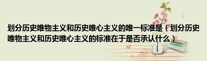 劃分歷史唯物主義和歷史唯心主義的唯一標(biāo)準(zhǔn)是(劃分歷史唯物主義和歷史唯心主義的標(biāo)準(zhǔn)在于是否承認(rèn)什么)