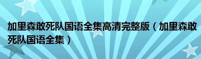加里森敢死隊國語全集高清完整版(加里森敢死隊國語全集)