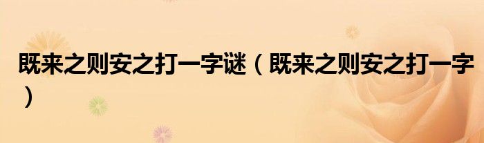 大家好,小聯(lián)來為大家解答以上的問題。既來之則安之打一字謎,既來之則安之打一字這個很多人還不知道,現(xiàn)在讓我們一起來看看吧!