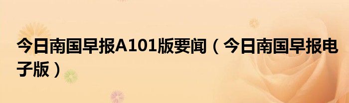今日南國早報A101版要聞(今日南國早報電子版)