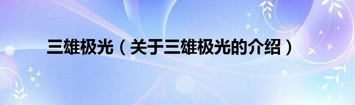 大家好,小虎來為大家解答以上的問題。三雄極光,關(guān)于三雄極光的介紹很多人還不知道,現(xiàn)在讓我們一起來看看吧!