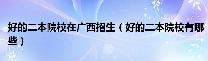 好的二本院校在廣西招生(好的二本院校有哪些)