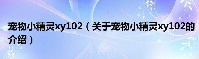 寵物小精靈xy102(關(guān)于寵物小精靈xy102的介紹)