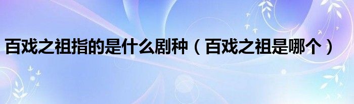 百戲之祖指的是什么劇種(百戲之祖是哪個)