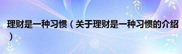 理財是一種習(xí)慣(關(guān)于理財是一種習(xí)慣的介紹)