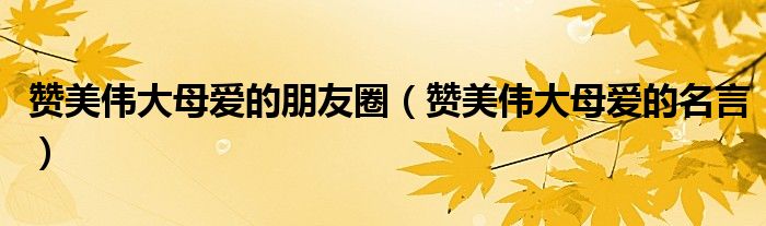 贊美偉大母愛(ài)的朋友圈(贊美偉大母愛(ài)的名言)