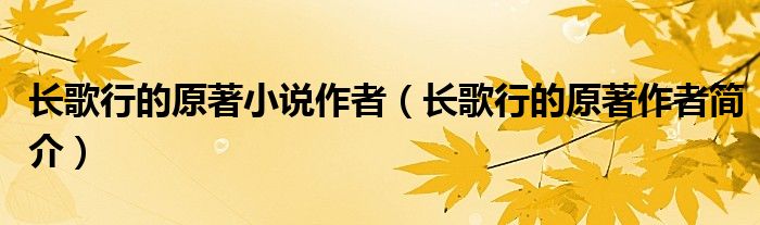 長(zhǎng)歌行的原著小說(shuō)作者(長(zhǎng)歌行的原著作者簡(jiǎn)介)