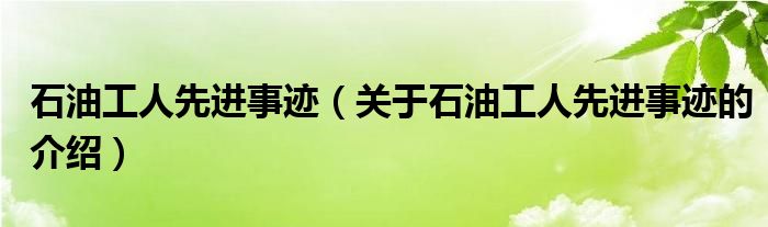 石油工人先進(jìn)事跡(關(guān)于石油工人先進(jìn)事跡的介紹)