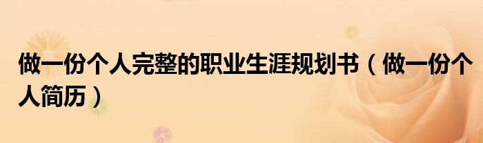 做一份個(gè)人完整的職業(yè)生涯規(guī)劃書(做一份個(gè)人簡(jiǎn)歷)