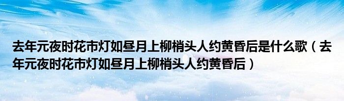 去年元夜時花市燈如晝月上柳梢頭人約黃昏后是什么歌(去年元夜時花市燈如晝月上柳梢頭人約黃昏后)