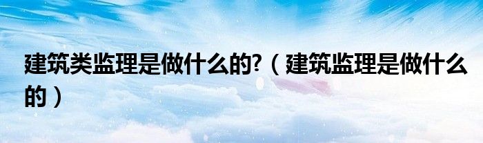 建筑類監(jiān)理是做什么的?(建筑監(jiān)理是做什么的)