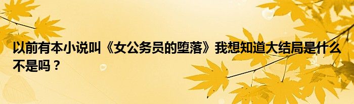 以前有本小說叫《女公務(wù)員的墮落》我想知道大結(jié)局是什么不是嗎?