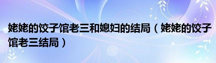 姥姥的餃子館老三和媳婦的結局(姥姥的餃子館老三結局)