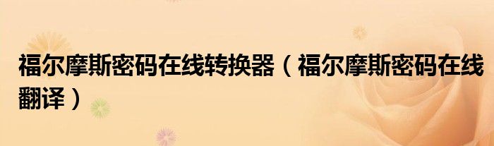 福爾摩斯密碼在線轉(zhuǎn)換器(福爾摩斯密碼在線翻譯)