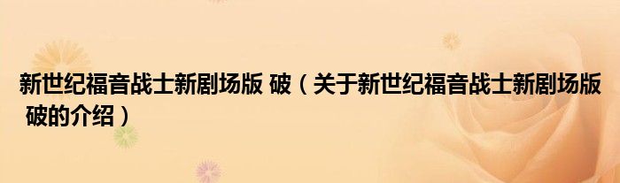 新世紀(jì)福音戰(zhàn)士新劇場版 破(關(guān)于新世紀(jì)福音戰(zhàn)士新劇場版 破的介紹)