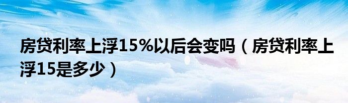 大家好,小虎來為大家講解下。房貸利率上浮15%以后會變嗎,房貸利率上浮15是多少很多人還不知道,現(xiàn)在讓我們一起來看看吧!