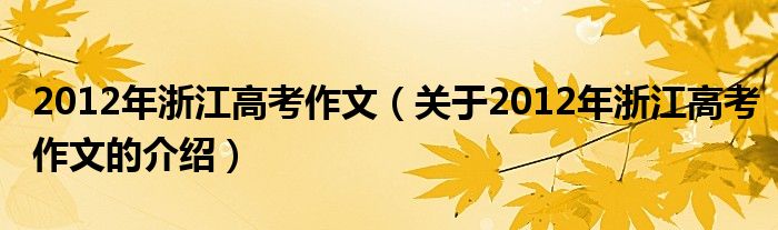 2012年浙江高考作文(關(guān)于2012年浙江高考作文的介紹)