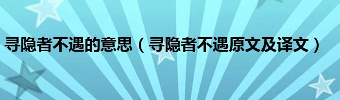 各位網(wǎng)友們好,我是編輯小夏,為大家解答尋隱者不遇的意思,尋隱者不遇原文及譯文問題。一起往下看看