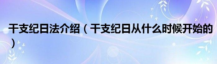 干支紀日法介紹(干支紀日從什么時候開始的)