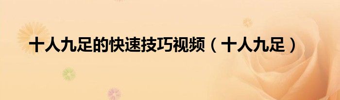 大家好,小聯(lián)來為大家解答以上的問題。十人九足的快速技巧視頻,十人九足這個很多人還不知道,現(xiàn)在讓我們一起來看看吧!