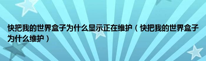 快把我的世界盒子為什么顯示正在維護(hù)(快把我的世界盒子為什么維護(hù))