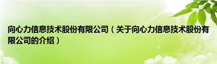 向心力信息技術股份有限公司(關于向心力信息技術股份有限公司的介紹)