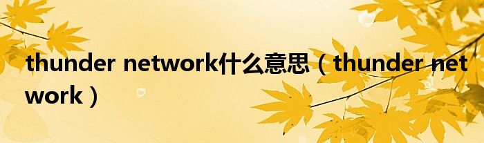 大家好,小聯(lián)來為大家解答以上的問題。thunder network什么意思,thunder network這個(gè)很多人還不知道,現(xiàn)在讓我們一起來看看吧!