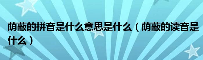 蔭蔽的拼音是什么意思是什么(蔭蔽的讀音是什么)