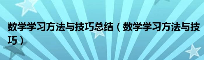 數(shù)學(xué)學(xué)習(xí)方法與技巧總結(jié)(數(shù)學(xué)學(xué)習(xí)方法與技巧)