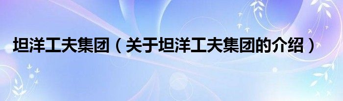 坦洋工夫集團(tuán)(關(guān)于坦洋工夫集團(tuán)的介紹)