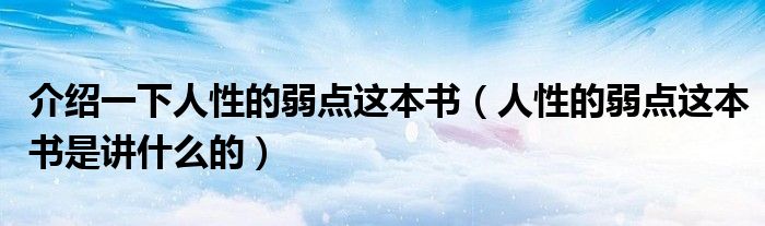 介紹一下人性的弱點這本書(人性的弱點這本書是講什么的)