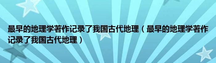 最早的地理學(xué)著作記錄了我國(guó)古代地理(最早的地理學(xué)著作記錄了我國(guó)古代地理)