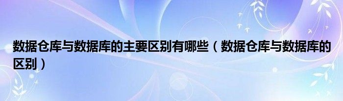 數(shù)據(jù)倉(cāng)庫(kù)與數(shù)據(jù)庫(kù)的主要區(qū)別有哪些(數(shù)據(jù)倉(cāng)庫(kù)與數(shù)據(jù)庫(kù)的區(qū)別)